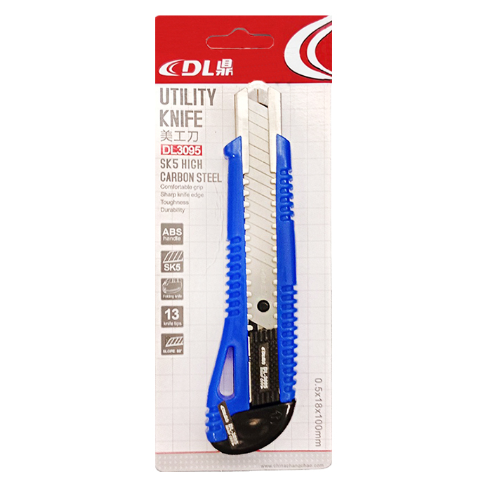 DL Utility Knife Paper Cutter 18mm – DL3095 SK 5 high Carbon Steel with comfortable grip, sharp knife edge that gives toughness and durability. This utility knife cutter is made of high-quality plastic material. This DL3095 18mm Utility Knife Cutter has a strong plastic grip to hold comfortably. This best utility knife is suitable for cutting paper, raw plastic, packing tape, cord, etc. This retractable cutter can be a very good addition to your tool kit, whether, at home or camping, this knife always comes in handy.