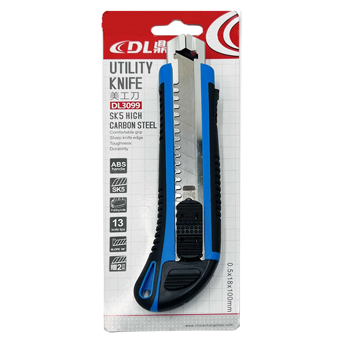 DL Utility Knife Paper Cutter 18mm – DL3099 SK 5 high Carbon Steel with comfortable grip, sharp knife edge that gives toughness and durability. This utility knife cutter is made of high-quality plastic material. This DL3099 18mm Utility Knife Cutter has a strong plastic grip to hold comfortably. This best utility knife is suitable for cutting paper, raw plastic, packing tape, cord, etc. This retractable cutter can be a very good addition to your tool kit, whether, at home or camping, this knife always comes in handy.