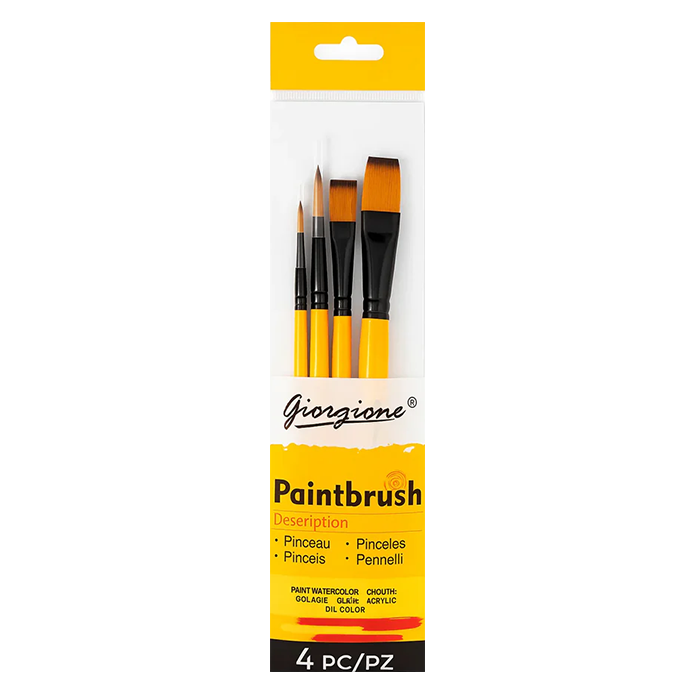 Giorgione Paintbrush 4Pcs Set (No.G-BV104) is a high-quality artist brush set designed for painting, sketching, and craft projects. Each brush features soft, durable bristles that ensure smooth and even strokes, perfect for acrylic, watercolor, poster, and oil painting.