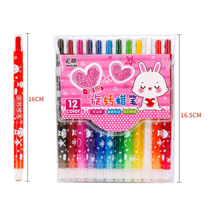 Huilin Long Twister Crayons 12Pcs No.4812 – Clean, Bright & Easy Coloring for Kids