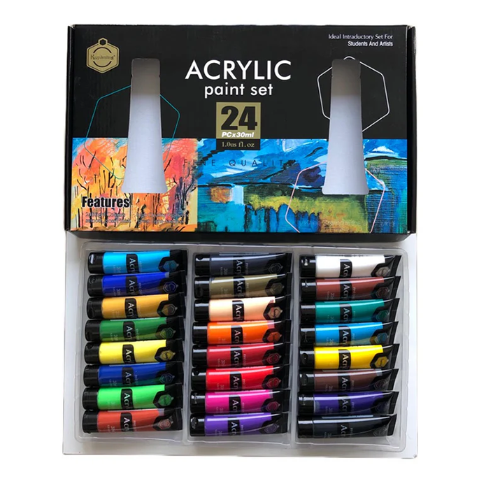 Keep Smiling Acrylic colour paint set with 24 kinds of vivid, richly-pigmented colors.