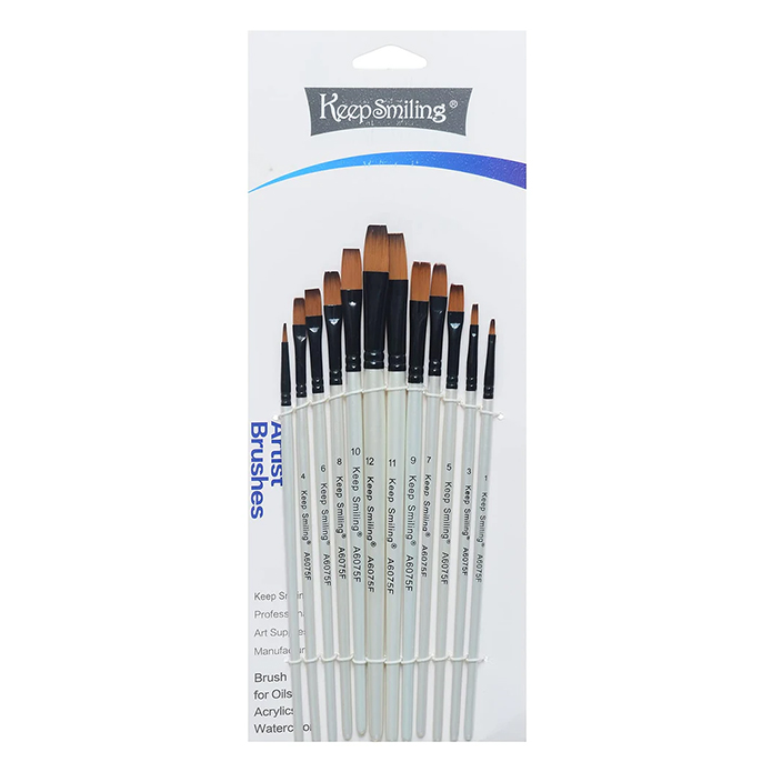 Keep Smiling Artist Brushes Set Flat – 12Pcs No.A6075F