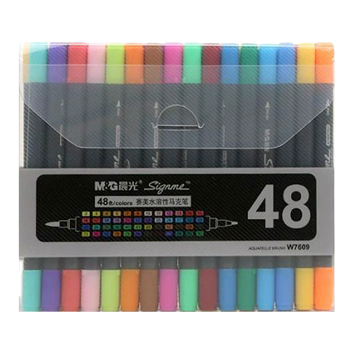 The M&G Signme Watercolor Marker Set W7609 is a premium set of dual-tip markers designed for artists, designers, students, and creative hobbyists. Each marker features a brush tip on one end for smooth watercolor-like strokes and a fine tip on the other end for precision detailing, outlining, and lettering.