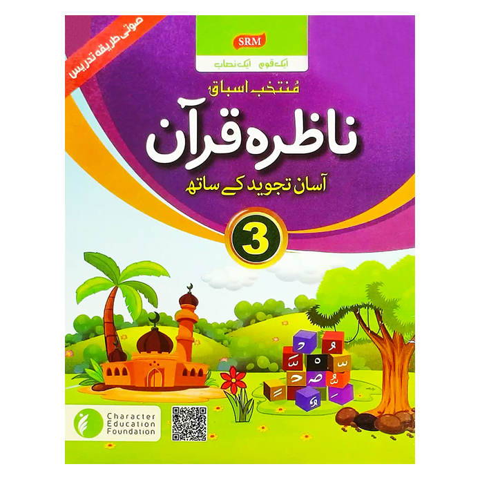 Nazira Quran 3 by Character Education Foundation (CEF) is the third level in the Nazira Quran learning series, designed to help students achieve fluency and mastery in Quranic recitation with correct Tajweed rules. This level focuses on long Surahs, complex word structures, and advanced pronunciation, ensuring students gain confidence in reading the Holy Quran accurately and beautifully.